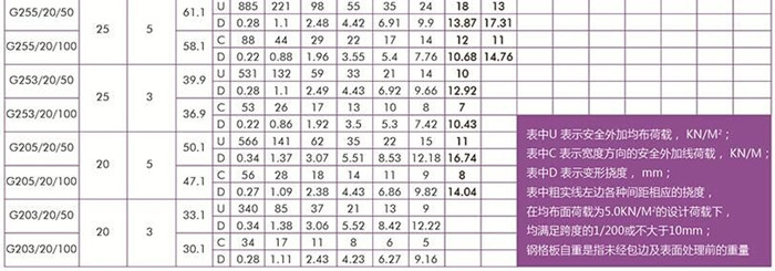 平面型扁鋼中心距為20常用鋼格板規(guī)格型號及安全荷載表